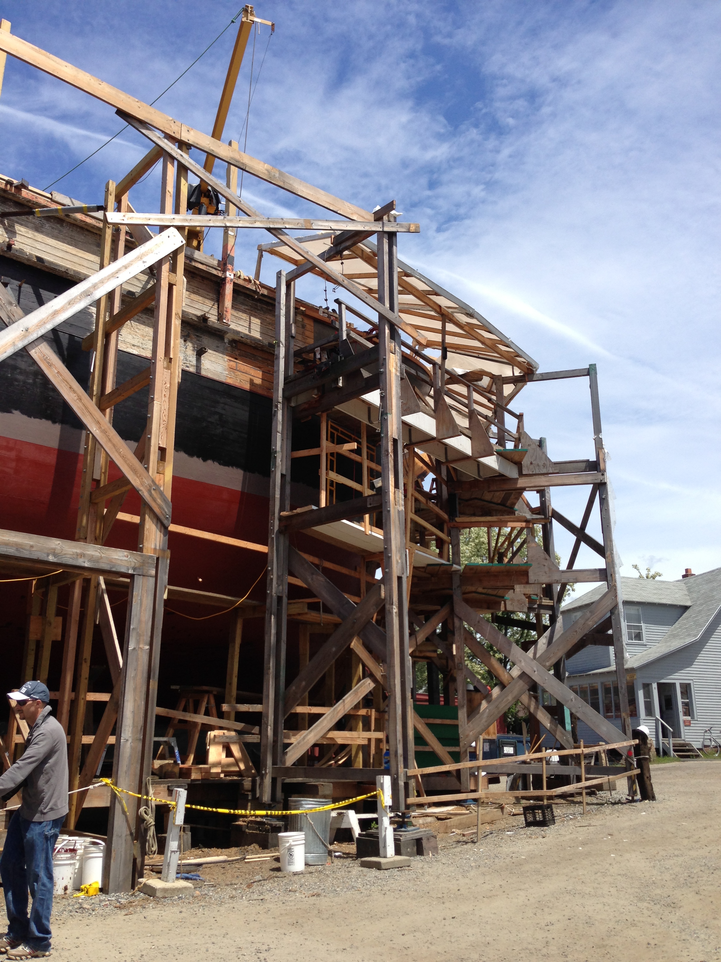 A day trip to Mystic is a must-do for us, at least several times over the summer. Under the guise of a walking trip, we strolled around town, checked out the new upper deck of the Oyster Club (we’ll be back), enjoyed outdoor lunch at S&P Oyster House, got a close-up look at the scaffold laden Charles W Morgan and nearly cried to discover the beading shop had closed down. Well, we’ll find others.
