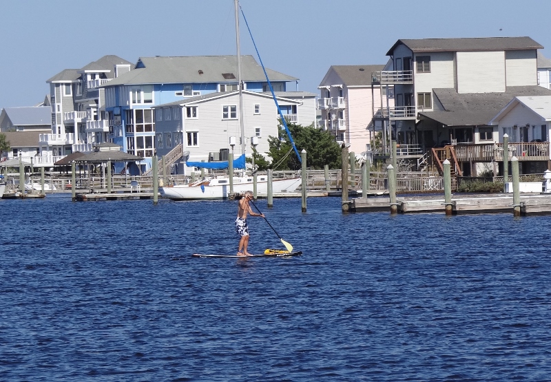 Carolina Beach is 11nm south of Wrightsville and we love it for many reasons; good moorings, protected, long beach, dining, and all that a popular seaside town has to offer… like doughnuts!! Yes, Britts is closed for the season but Wake N Bake suffices very well. Did that walk Sunday then picked up a few things at Food Lion next door where I was handed two pink carnations. 🙂