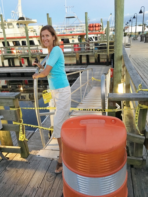 Matthew somehow, we couldn’t figure out how exactly, did a number on the railings of the ramp. Other than that, the docks the ramp all perfectly safe. The town spent money and materials to fence off the ramp entrance and the yellow tape thing too, but hey we need some excitement!