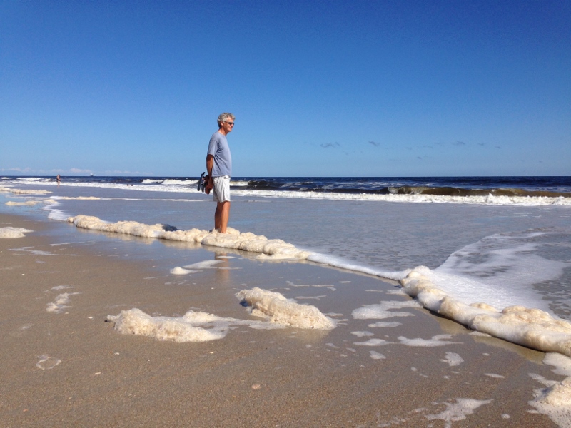 The waves brought in more foam than we ever typically see. Oh, did you know that if the foam is brownish you might not want it on you? Yikes, that’d be due to waste material in the water. Another hurricane not so fun fact.